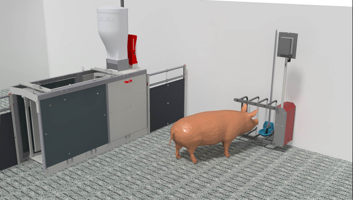 Schauer Agrotronic has developed a new, low-priced trough-wall feeder, the LongTail Feeder. This means that all animals - at least in the pre-fattening phase - can each be offered a feeding place and at the same time the feed supply ad libitum in the LongTail Feeder. Each feeder is mounted and filled directly on the opposite side of the trough wall. The desired dosing quantity in the long feeding trough can be set easily and reliably. The trough wall feeder is significantly cheaper than providing the same number of feeding places with conventional dry feeders. The patent-pending design of the dosing device prevents the trough from overfilling and thus feed losses. The pigs are actively engaged in feeding for a long time and are less preoccupied with the tails of the other pigs.