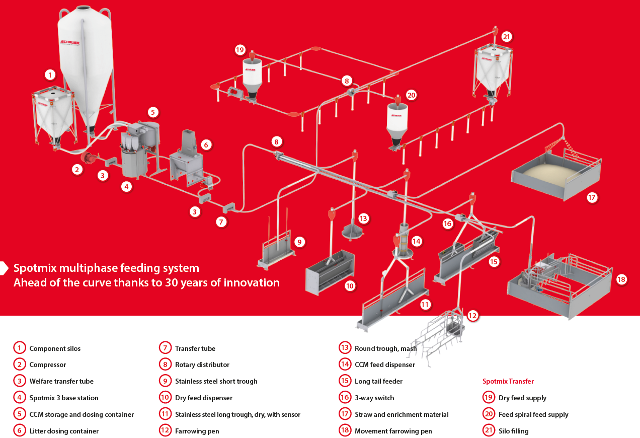 Spotmix Welfare: Litter & enrichment - Spotmix Transfer: Flexible mixing & distribution: